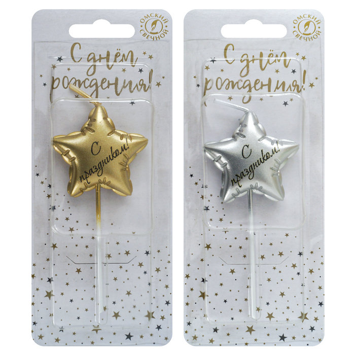 0058 Свеча тортовая Воздушная звезда «С праздником», микс сер/зол 9см