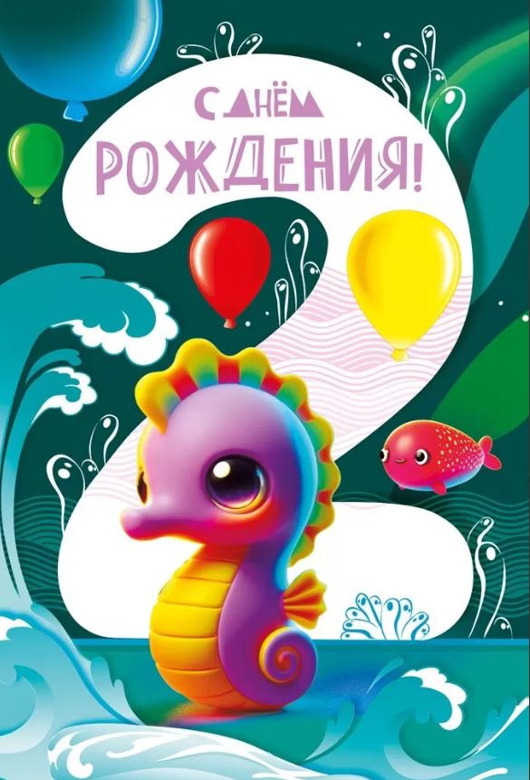 059921 Открытка «С Днем рождения! 2 годика» Морские животные А5