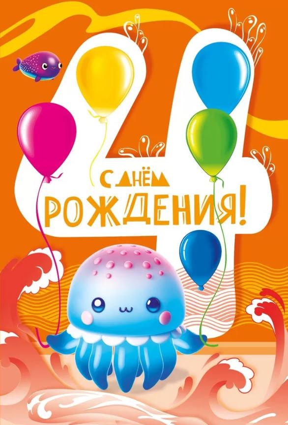 059923 Открытка «С Днем рождения! 4 годика» Морские животные А5