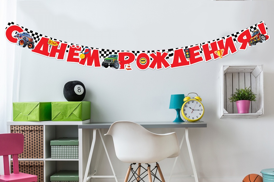 0600410 Гирлянда «С Днем рождения!» Машинки 1,8м