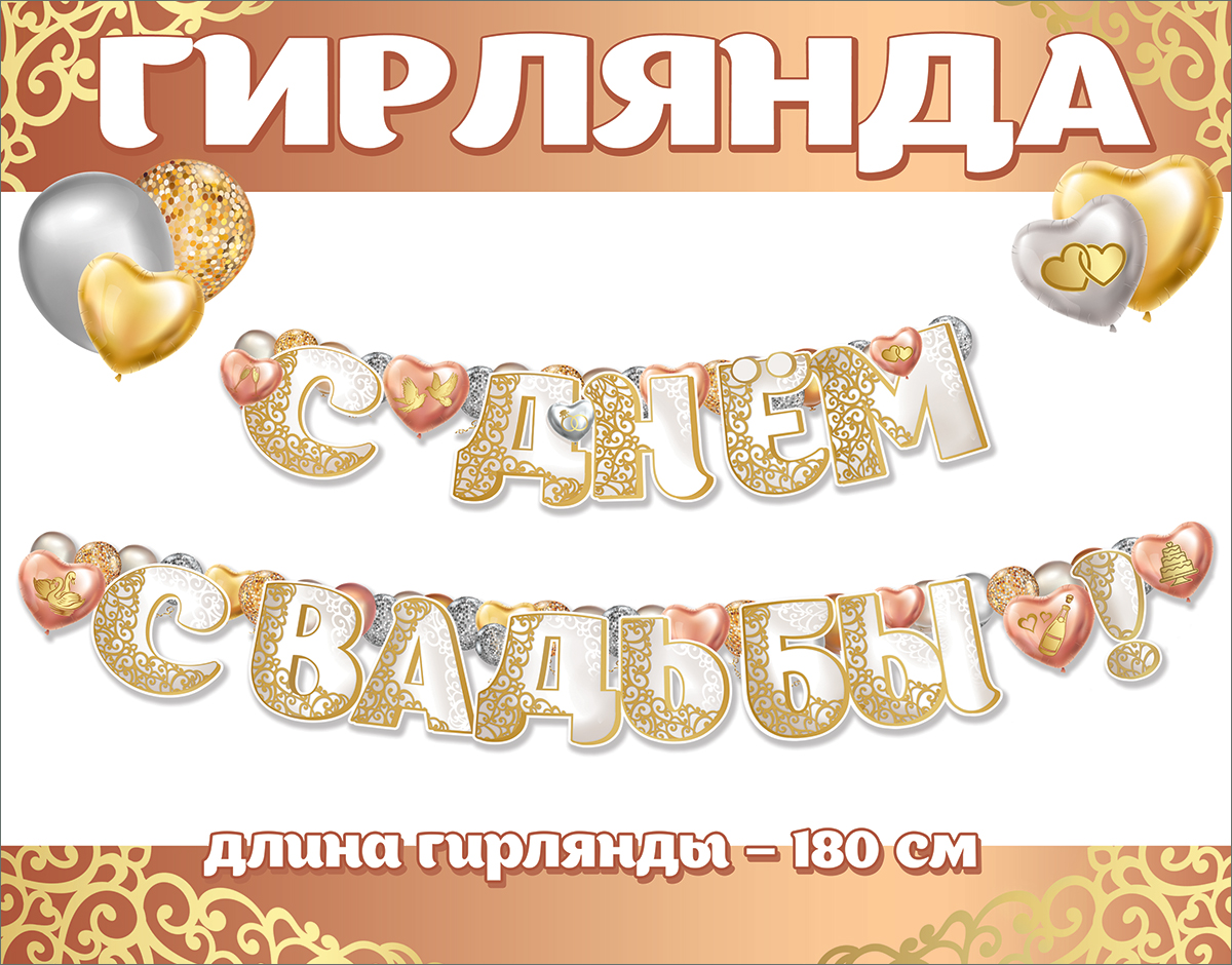 0600424 Гирлянда «С Днем свадьбы!» 1,8м