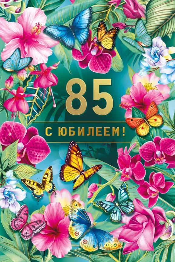 060995 Открытка «С Юбилеем! 85» Бабочки А5