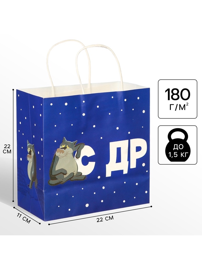 10000804 Пакет крафт «С др тебя!Если чо» 22 х 22 х 11 см