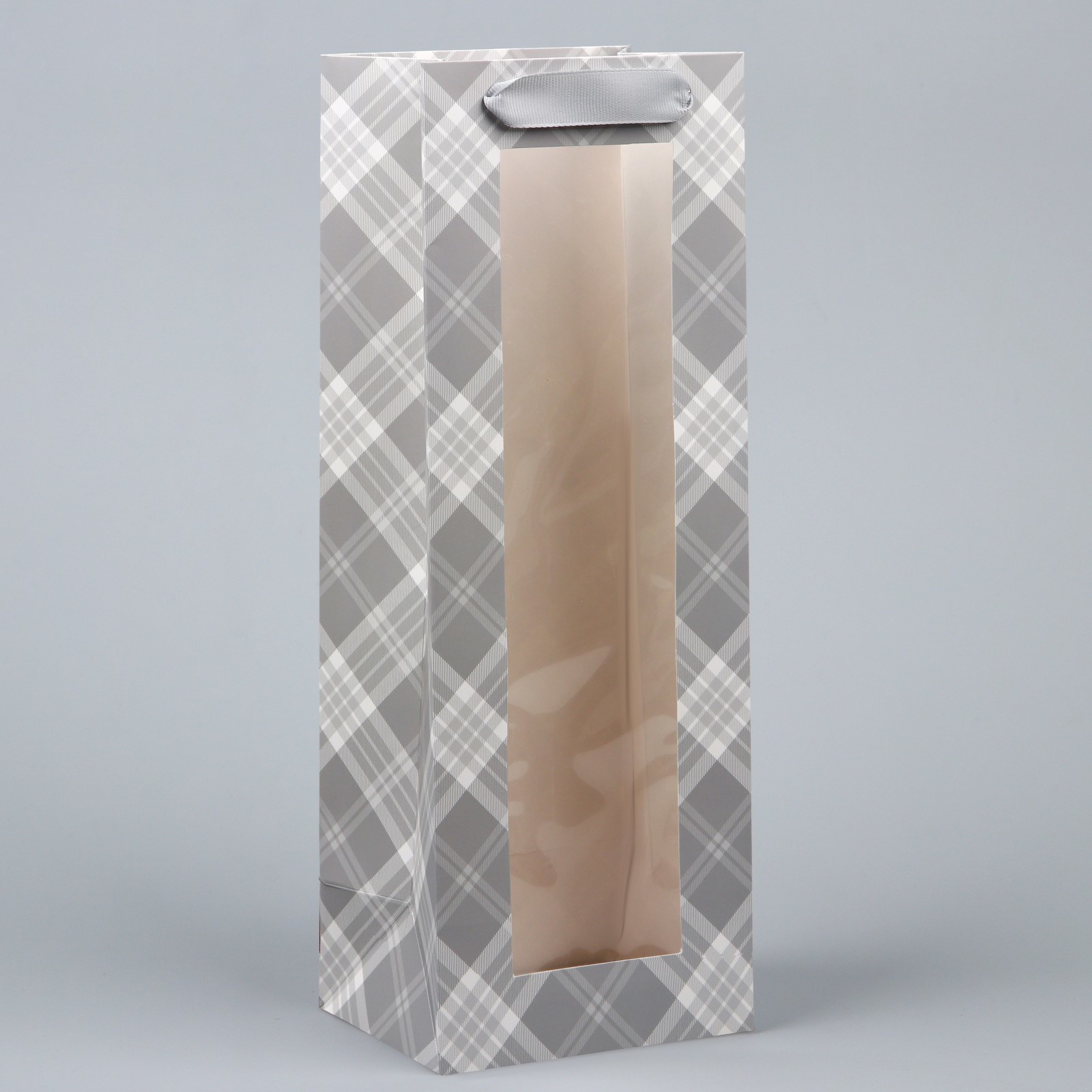 10139779 Пакет подарочный под бутылку «Клетка» 36 х 13 х 10 см