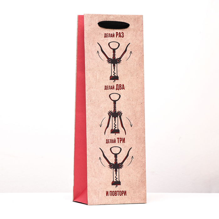 10390512 Пакет подарочный под бутылку «Делай раз» 12 х 36 х 8,5 см