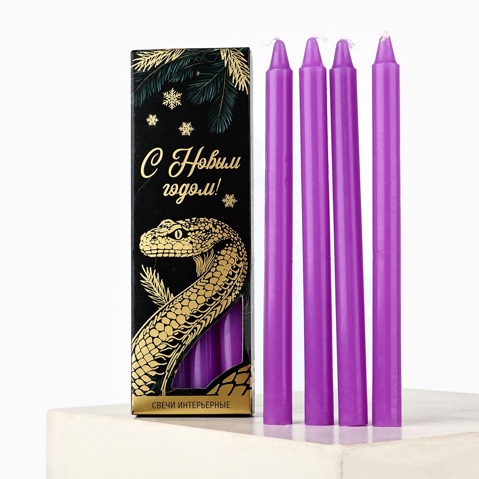 10393552 Набор свечи новогодние «С Новым годом!», 4 шт, сиреневые