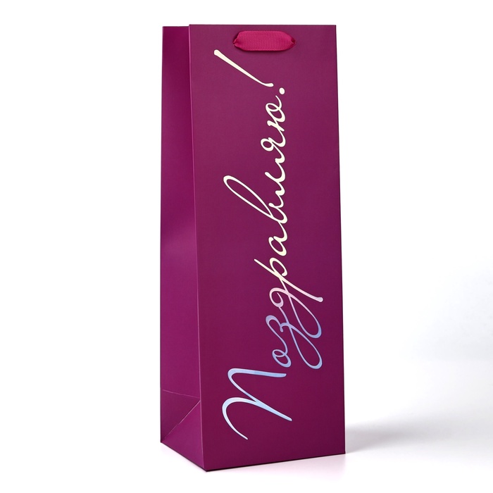 10444829 Пакет подарочный под бутылку «Поздравляю»,голография 36 х 13 х 10 см