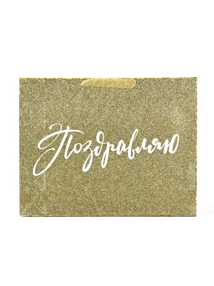 10444851 Пакет подарочный «Поздравляю», золото, 40 х 31 х 11.5 см