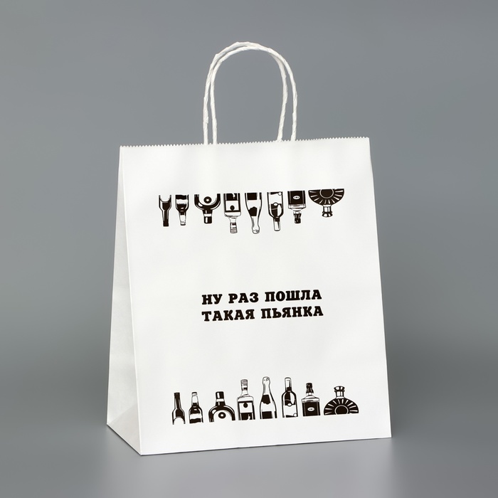10515037 Пакет белый, с приколом, «Ну раз пошла такая пьянка», 24 х 14 х 28 см