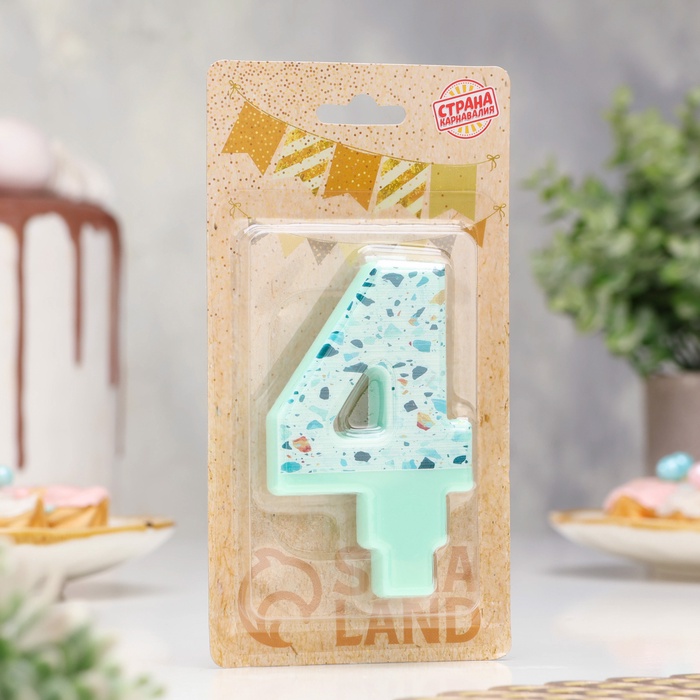 10603255 Свеча тортовая цифра «4» «Мозайка» голубой