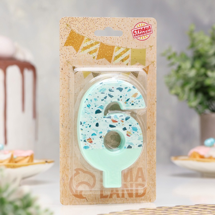 10603257 Свеча тортовая цифра «6» «Мозайка» голубой