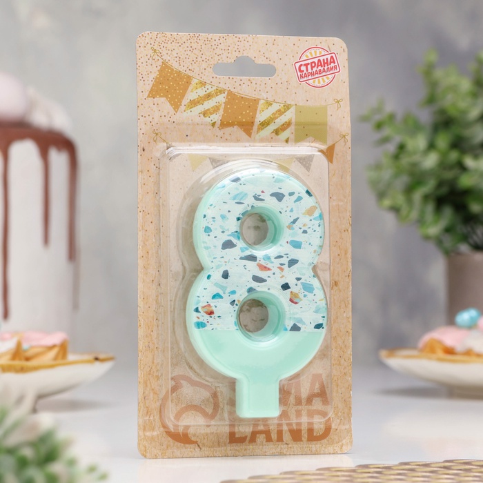 10603259 Свеча тортовая цифра «8» «Мозайка» голубой