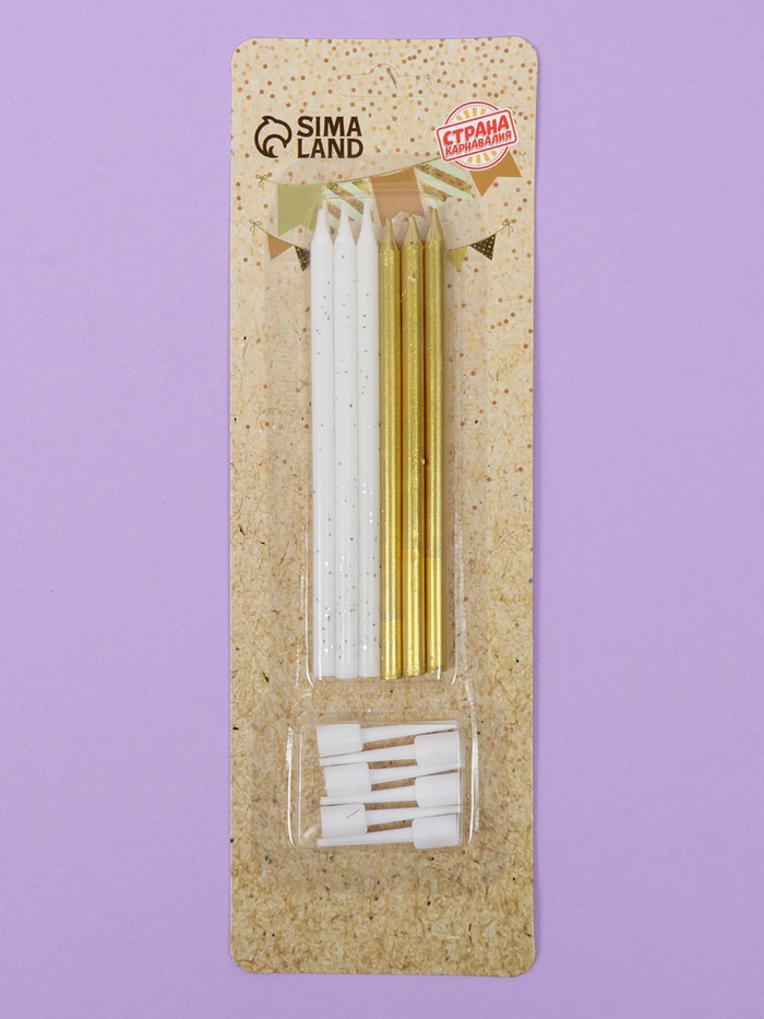 10603404 Свечи в торт «Блестящая вечеринка», 6 шт,белый, золотой