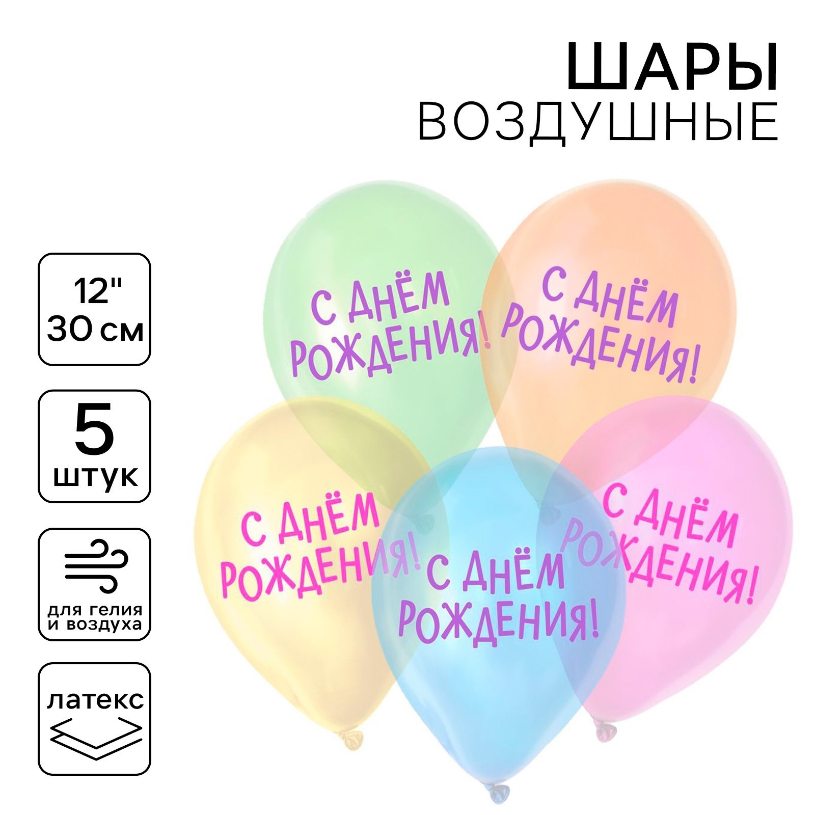 10683089 Набор шаров 12″(30см) «С днём рождения» кристалл, 5 шт.