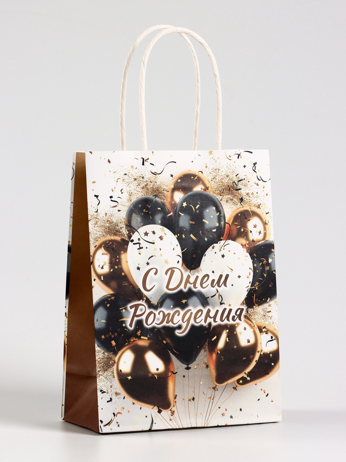10719856 Пакет крафт. «С днем рождения»,15 х 8 х 21 см