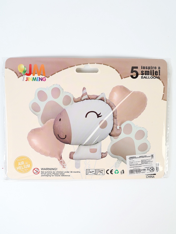 10880816 Набор из шаров «Единорог»,кремовый, фольга, 5 шт.
