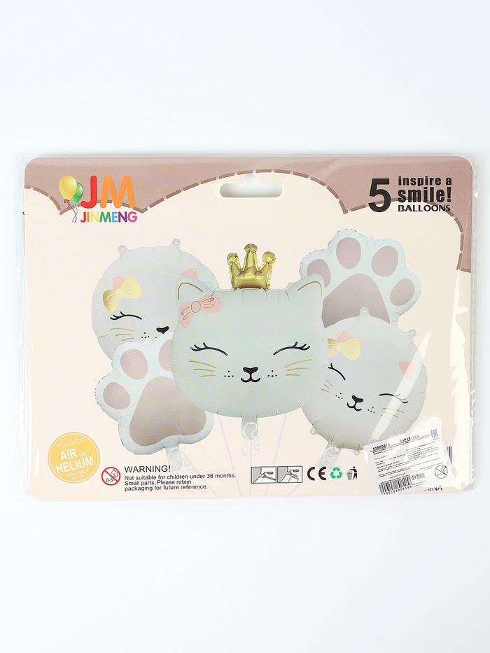 10880818 Набор из шаров «Кошечка с короной», кремовый,фольга, 5 шт.