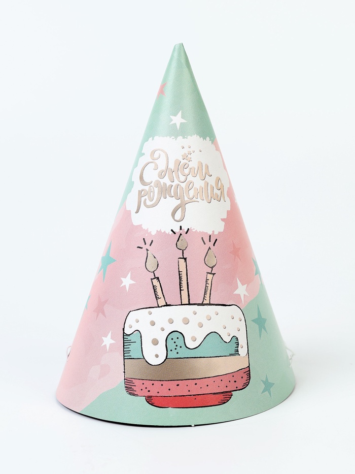 10920711 Колпак бумажный «С Днём Рождения», торт, набор 6 шт