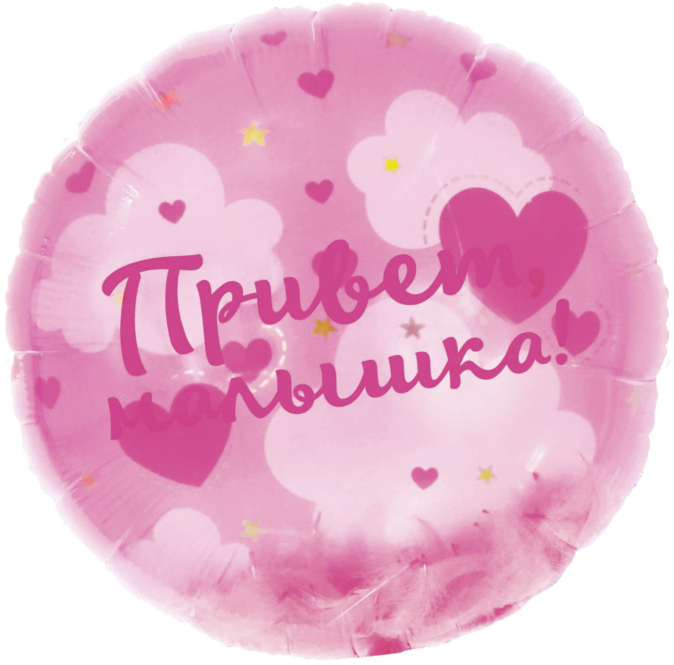 10947094 ШФ 20″ (51см) Круг «Привет, Малышка», воздушные перья, розовый