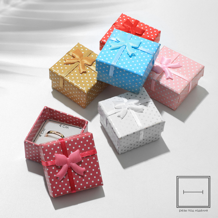 1150931 Коробка «Горошек»,под кольцо с бантом, МИКС, 4,5 х 4,5 см.