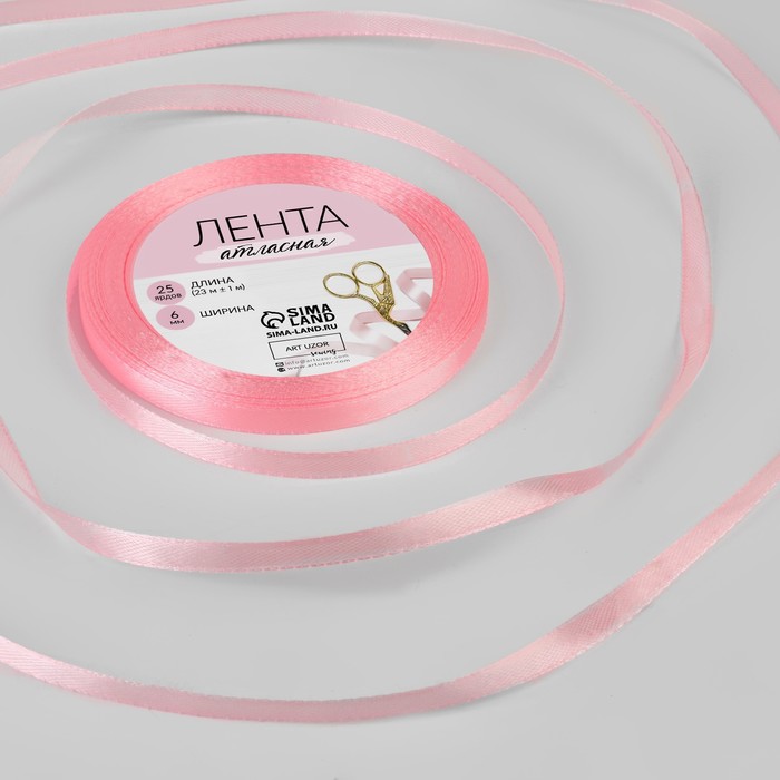 1218060 Лента атласная розовая, 6ммх1м, *1/23м