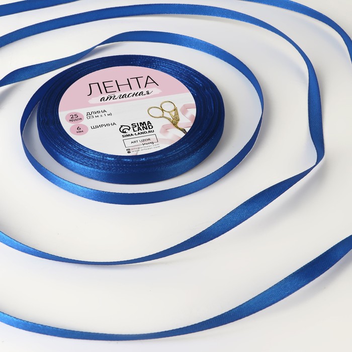 1218103 Лента атласная синяя, 6ммх1м, *1/23м