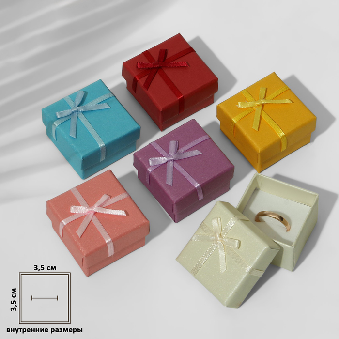 127427 Коробка «Перламутр»,под кольцо с бантом, МИКС, 4 х 4 см.