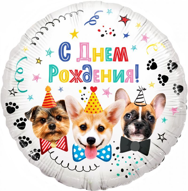 13343 ШФ 18″(46см) Круг, Собачки, С Днем Рождения!, в упак.