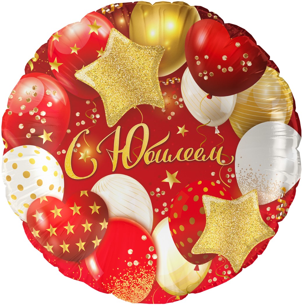 13493 ШФ 18″ (46см) Круг «С Юбилеем» красно-золотой