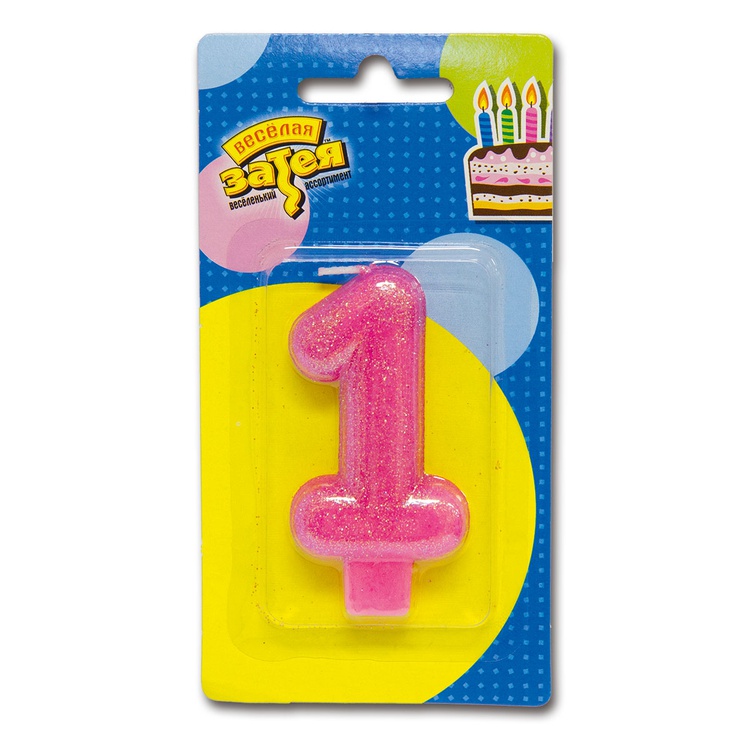 1502-2145 Свеча тортовая цифра «1» Блестящая розовая
