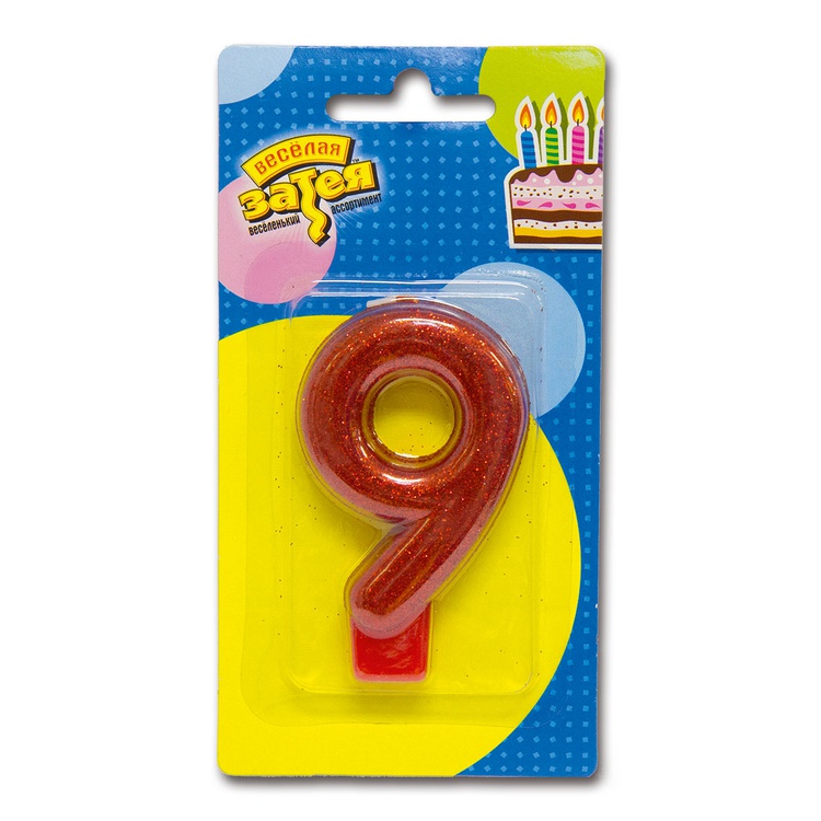 1502-2156 Свеча тортовая цифра «9» Блестящая