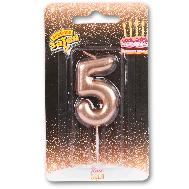 1502-3005 Свеча тортовая цифра «5» Розовое золото