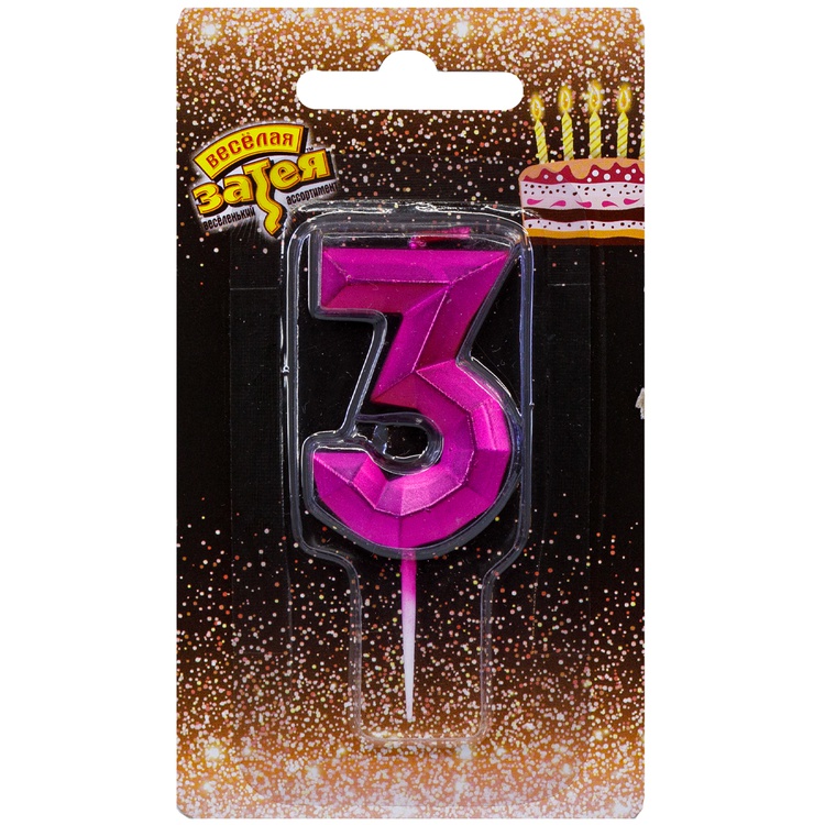 1502-4845 Свеча тортовая цифра «3» Диамант Маджента