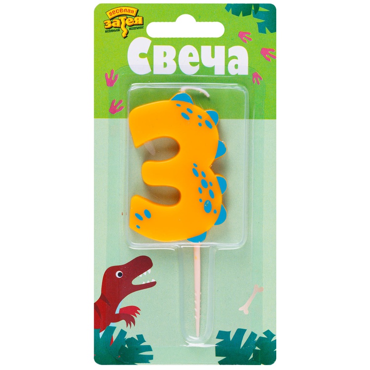 1502-5723 Свеча тортовая цифра «3» Динозаврик
