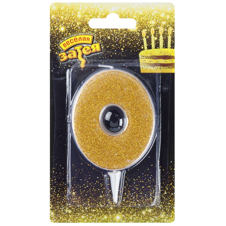 1502-5835 Свеча тортовая цифра «0» Золотая глиттер