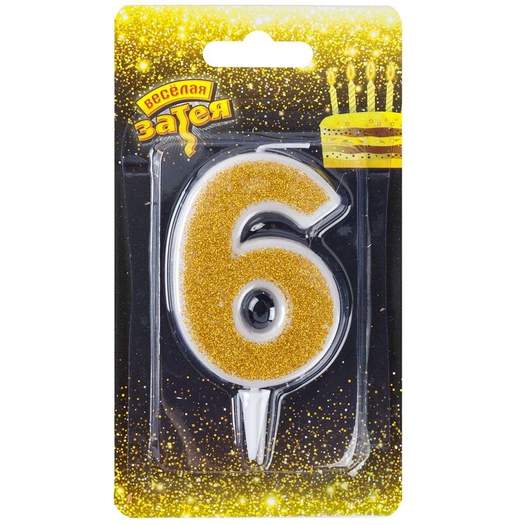 1502-5841 Свеча тортовая цифра «6» Золотая глиттер