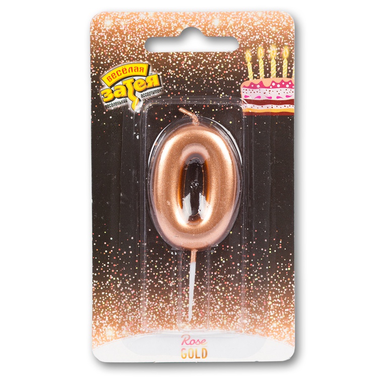1502-6114 Свеча тортовая цифра «0» Розовое золото