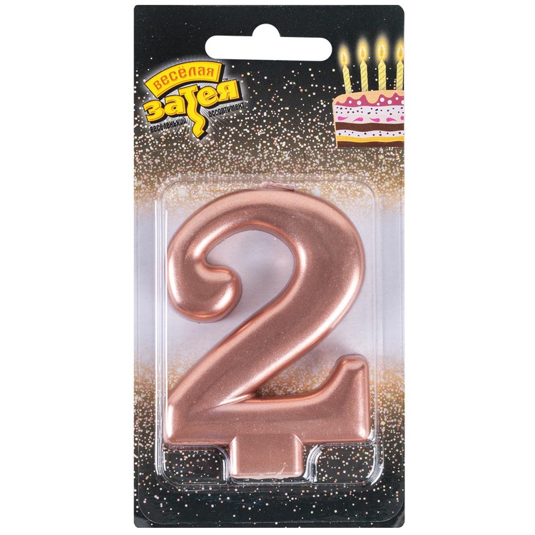 1502-6116 Свеча тортовая цифра «2» Розовое золото