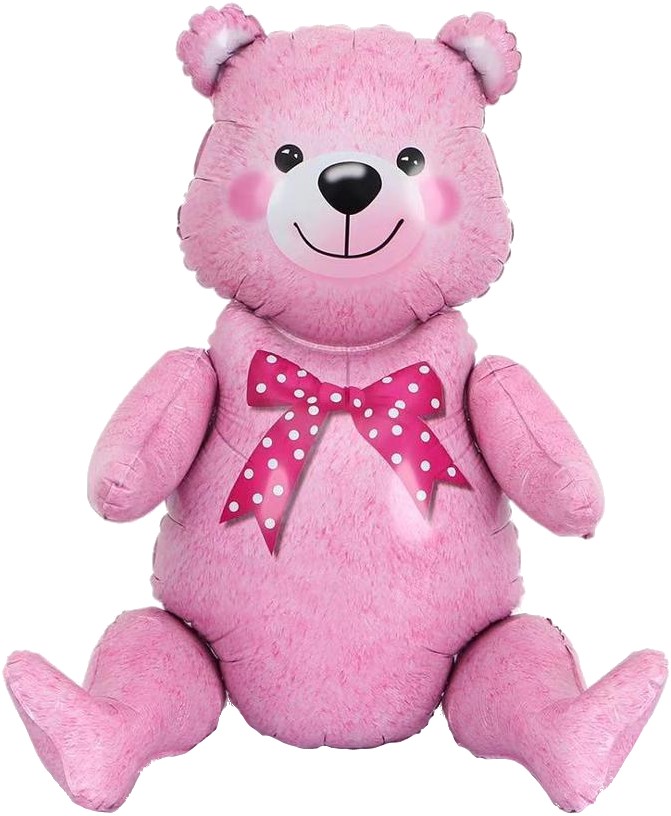 15536 ШФ Фигура 22″(56см) Сидячий мишка, Розовый, в упак.