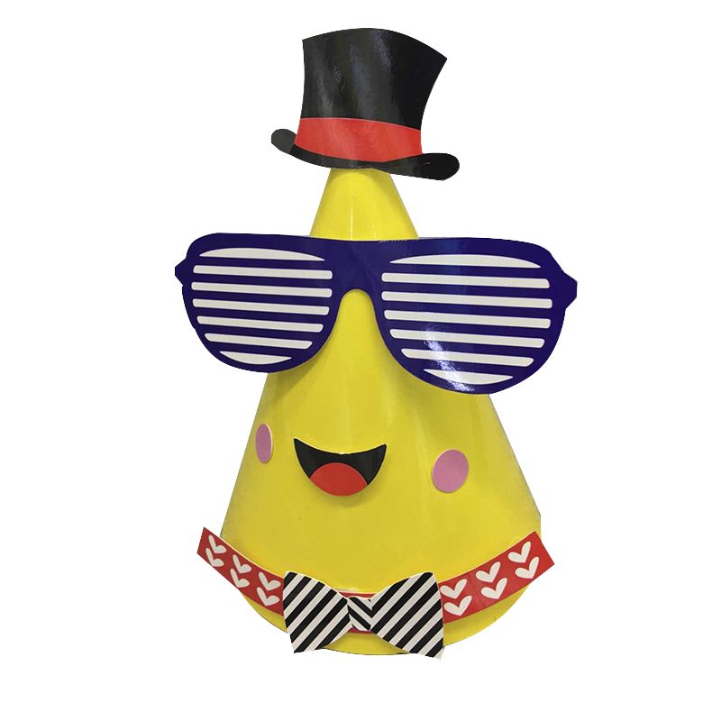 Универсальный колпак 21см с декором «Вечеринка» Желтый подойдет для всех возрастов.