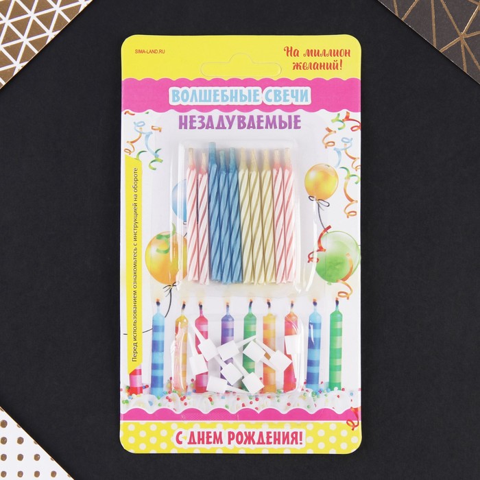 1722210 Свечи в торт «На миллион желаний», незадуваемые 10 шт,6 см