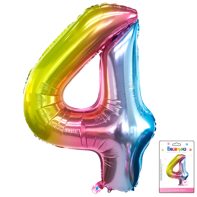 190019-4 ШФ 40″ (102см) Цифра «4» Радуга в уп