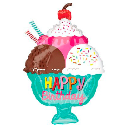 Миниатюрный фольгированный воздушный шар Мороженое подойдет для оформления крафт-букетов, композиций без использования гелия и как самостоятельный подарок сладкоежкам.