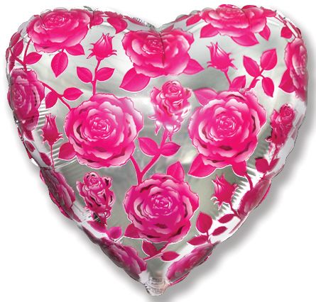 Шар фольгированный FLEX METAL (Испания), сердце 48см, дизайн — Розы (фуксия).