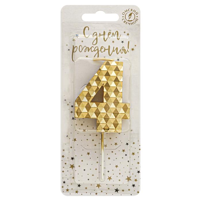 2194 Свеча тортовая цифра «4» «Соты» золото