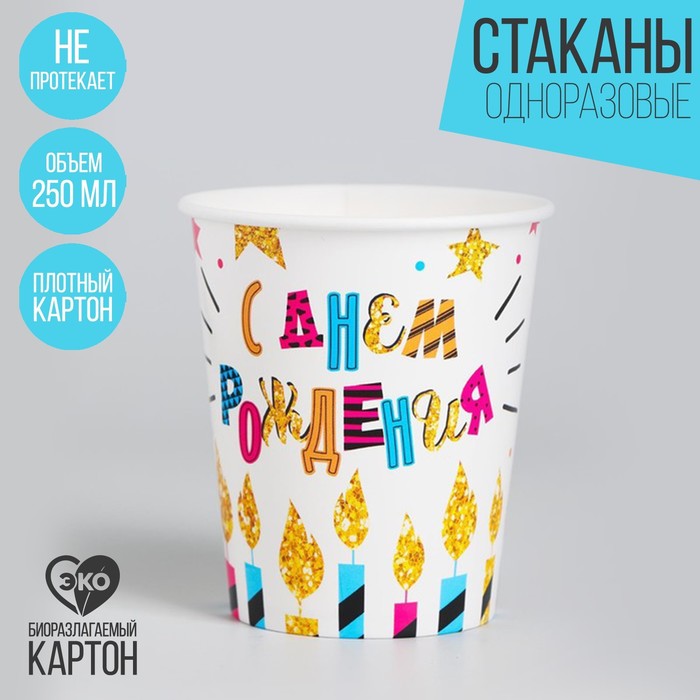 2370421 Стакан бумажный «С Днем рождения» свечи и звезды, 250 мл 6шт