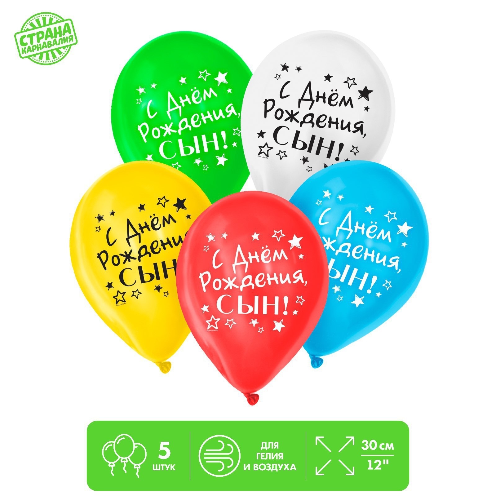 2422530 Набор шаров 12″(30см) «С днём рождения,сын», 5 шт.