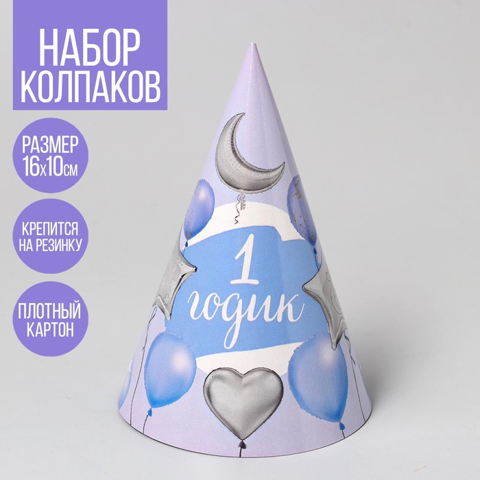 2844406 Бумажный колпак «1 годик. Малыш», 16см,цвет голубой