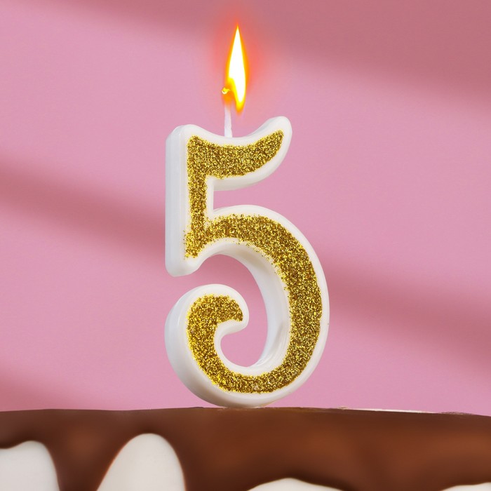 2919641 Свеча тортовая цифра «5» Блёстки, золотистая
