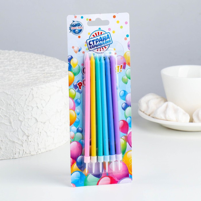 2919647 Свечи в торт коктейльные «С днём рождения», 6 шт, высокие, 13 см